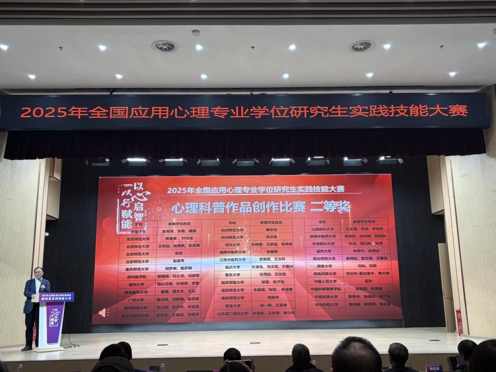 近期,由中国学位与研究生教育学会应用心理专业学位工作委员会与华东师范大学心理与认知科学学院联合主办的“2025年全国应用心理专业学位研究生实践技能大赛(决赛)”在上海隆重举行。经过初赛阶段180位专家严格选拔,来自全国85所院校的300余位师生齐聚...