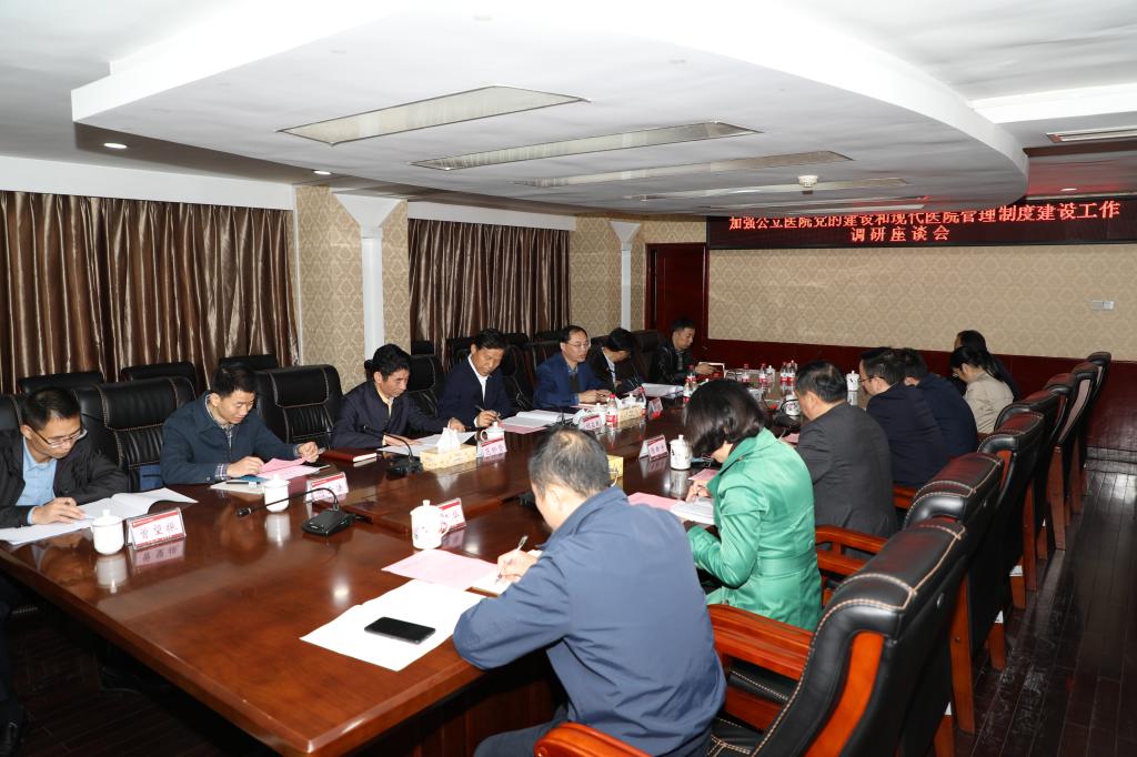 座谈会上,医院党委书记刘平安向调研组汇报了近几年医院党的建设及现代医院管理制度建设所做的主要工作及取得的成效,相关负责人和职能部门代表就医院监督执纪、基层党建、文化建设等方面的内容进行了交流探讨。省中医药管理局副局长肖文明、省卫生健康委员会体改处处长范珍贤等对调研情况进行了反馈。