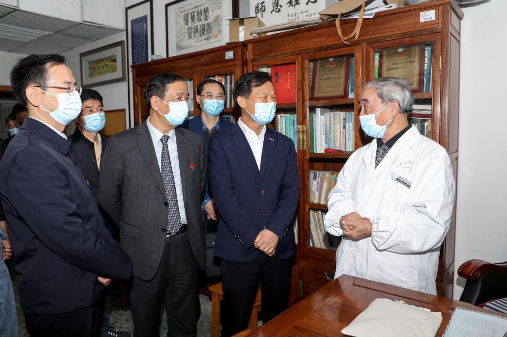祝益民一行来到医院国家“中医药传承创新工程”施工现场,了解该项目工程进度,在疼痛理疗科、医学检验与病理中心、针灸推拿康复科、治未病中心、国医堂等地实地考察医院党建阵地建设情况,并看望慰问了全国名中医王行宽教授、知名儿科专家张涤教授。