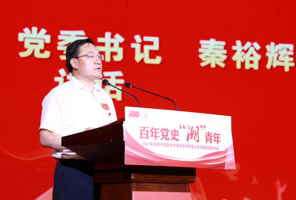 校(院)党委书记秦裕辉在青年宣讲团成立仪式上致辞。他强调,青年宣讲团是宣传党史的重要窗口,是思想政治理论课的有效延伸。宣讲团成员要以故事为形式、以知识为载体,通过“小切口”讲好党和革命的“大故事”,引导师生群众在学思践悟中厚植爱党、爱国、爱社会主义的情感,做到真学、真懂、真信、真行,让红色基因、革命薪火代代传承。