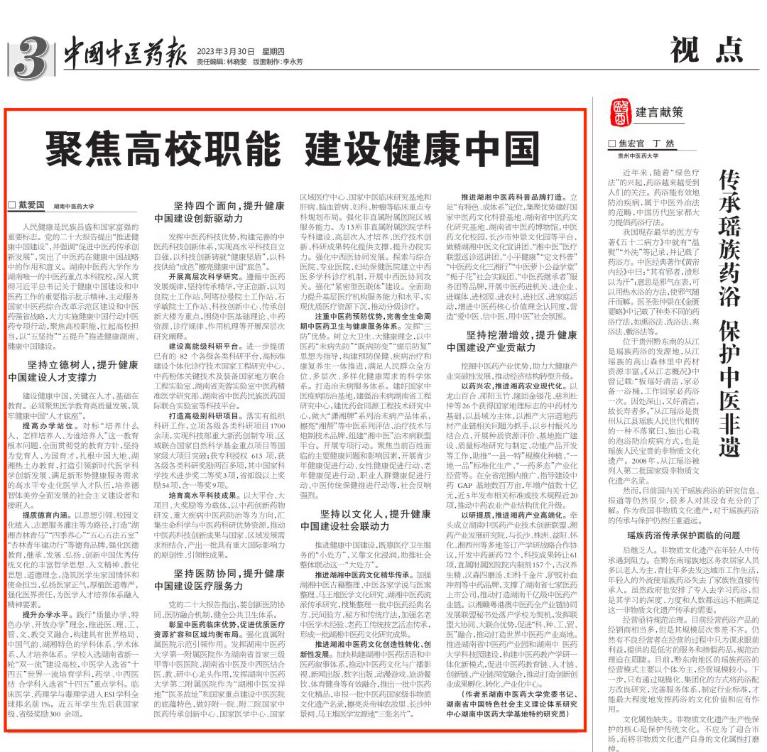 人民健康是民族昌盛和国家富强的重要标志。党的二十大报告提出“推进健康中国建设”,并强调“促进中医药传承创新发展”,突出了中医药在健康中国战略中的作用和意义。半岛手机版官网登录