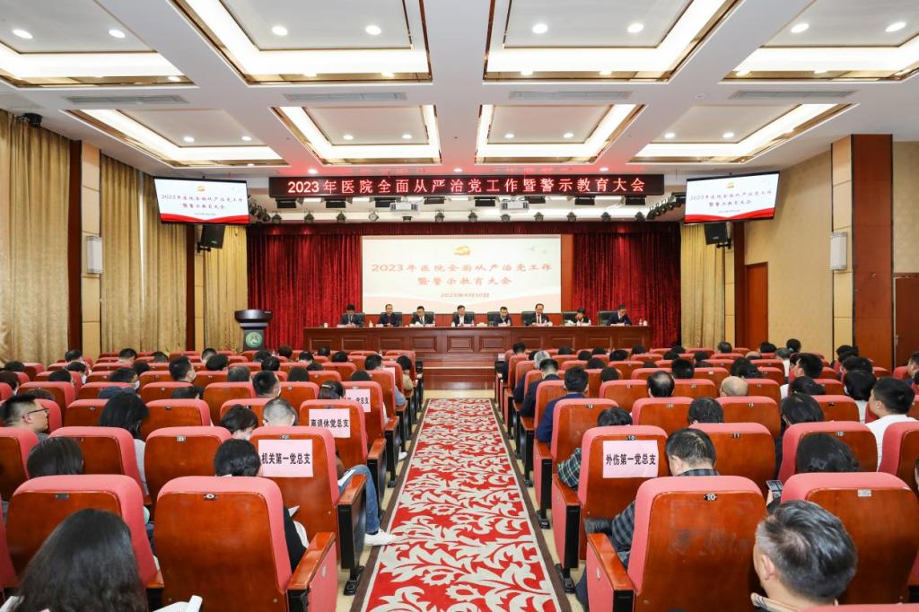 为深入贯彻习近平新时代中国特色社会主义思想和党的二十大精神,坚决落实二十届中央纪委二次全会、省十二届纪委三次全会和全省教育系统、省卫健委及大学全面从严治党工作会议部署要求,4月10日下午,我校第一附属医院召开2023年全面从严治党工作暨警示教育大会。校党委书记戴爱国,校纪委副书记、监察专员办公室主任易辉,医院全体院领导,人大代表、民主党派主要负责人,校第六届特约监察员,各党总支、直属党支部书记及组织委员、纪检委员,各党支部书记,护士长以上干部,正高级专业技术人员,受表彰的先进集体和先进个人共275人参加会议。会议由第一附属医院院长朱镇华主持。
