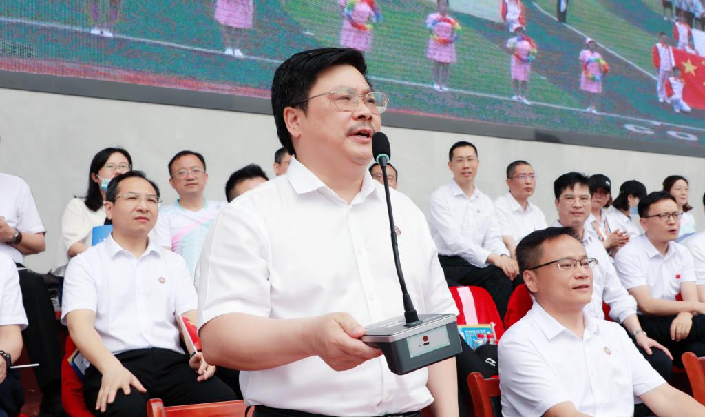 校长易刚强致开幕词。他首先对为本次运动会付出辛勤劳动的教职员工和同学们表示衷心的感谢,并表示,体育运动是推动国家发展的强大动力,是健康生活的一剂良方,是增进个人魅力的有效途径。他勉励广大教职员工和同学们要把体育运动当作一种习惯,让身心健康成为一种追求,将全民健身作为一种风尚,积极投身到体育锻炼中去,要走出寝室、教室、办公室,走向运动场、走向大自然,锻造强健体魄,彰显活力人生。