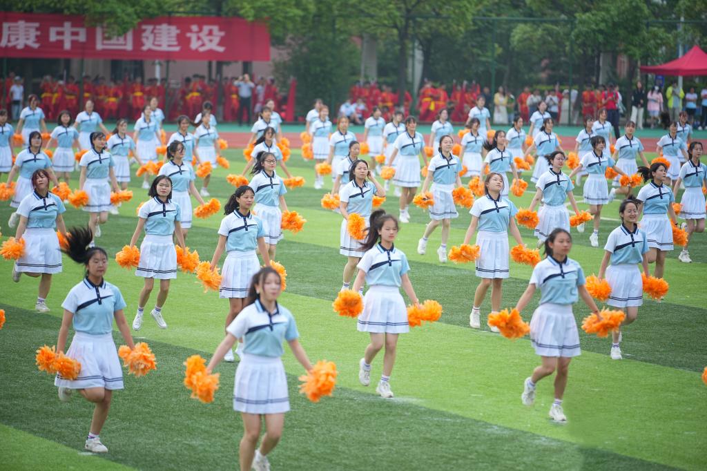 展旗烈烈,如似火年华,同学们奔跑向前,展现青春洋溢的《中国范》;江水流淌日月新,舞动出景秀山河,歌舞表演献礼《我的祖国》;武术、太极融合健身功法,《武韵》十足;在欢快的歌声中,跳着雀跃的舞步,许下《我们都是追梦人》的青春诺言。