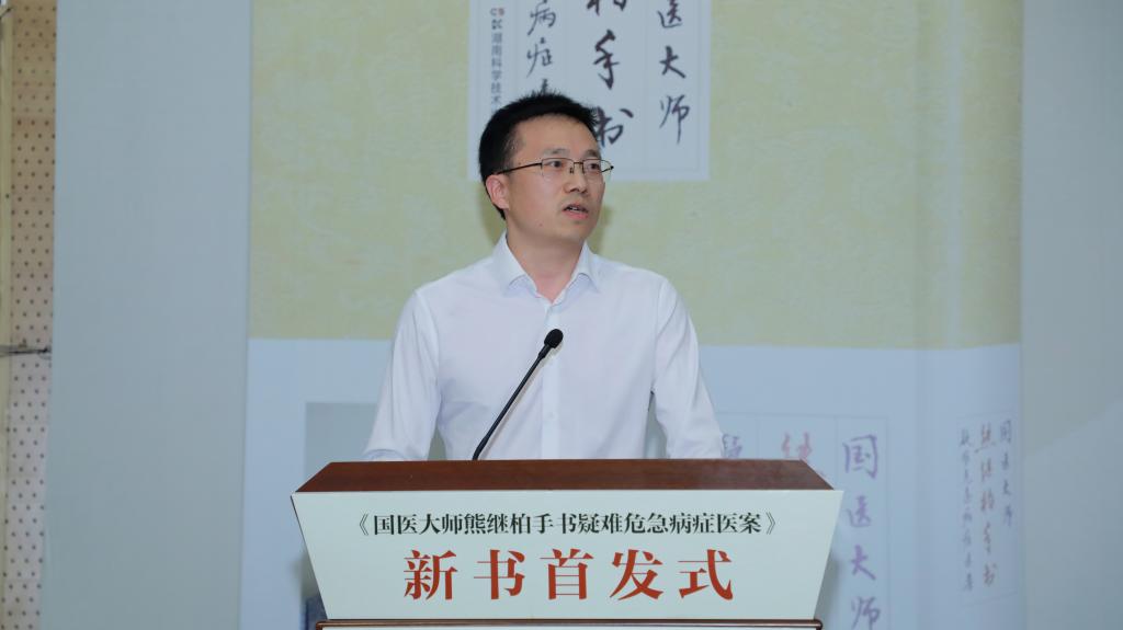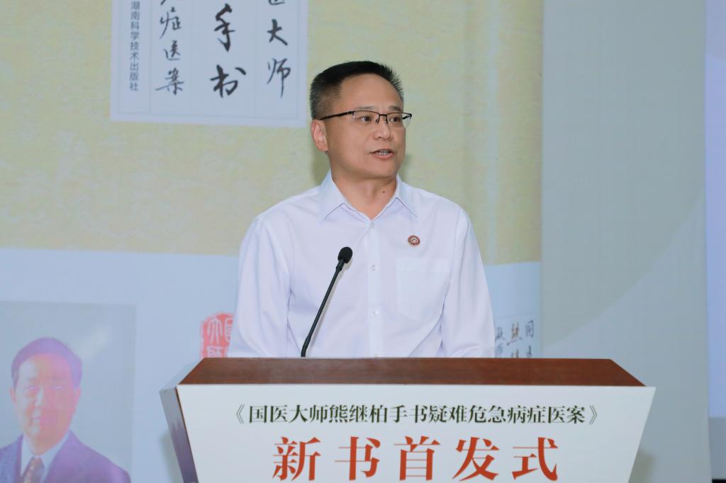 易刚强在致辞中表示,熊继柏教授是理验俱丰、德艺双馨的临床大家和教学名师,更是当代湖湘中医的标杆和中医学界的杰出代表。《国医大师熊继柏手书疑难危急病症医案》一书,不仅是传承创新的医学大作、启迪后学的医学力作、更是造福人民的医学佳作。他强调,学校要充分发挥“主力军”“排头兵”作用,以医德教育“扶正祛邪”,以文化浸润“养气安神”,以学术传承“固本培元”,以临床实践“舒筋健骨”,紧跟新时代,抢抓好中医药发展大有可为、大有作为的重要战略机遇期。