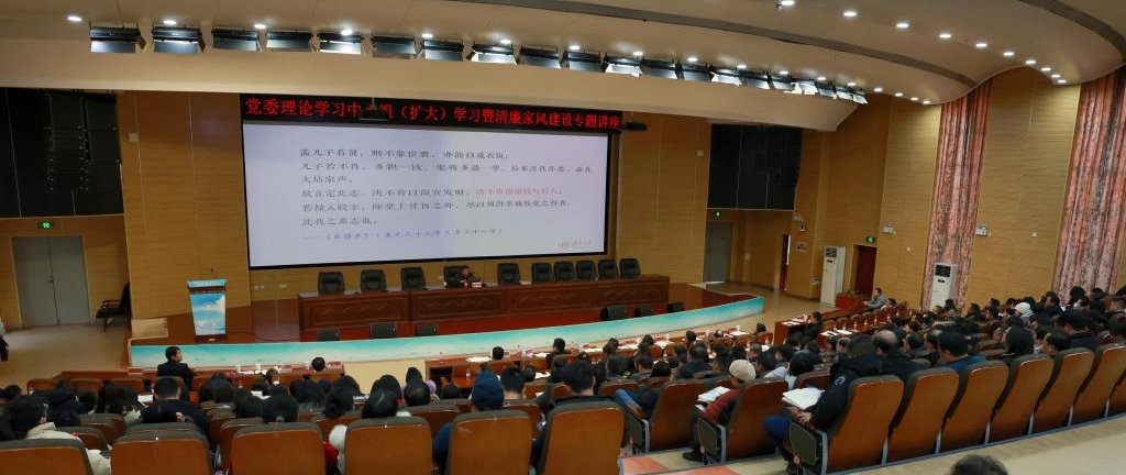 12月21日,学校党委理论学习中心组(扩大)学习暨清廉家风建设专题讲座在第三教学楼学术报告厅召开,湖南大学教育科学研究院李兵教授应邀授课。我校党委书记戴爱国主持学习并讲话,全体在家校领导、学校全体副科级以上干部、特约监察员、各二级党组织纪检委员、职工党支部书记等共390余人参加学习。