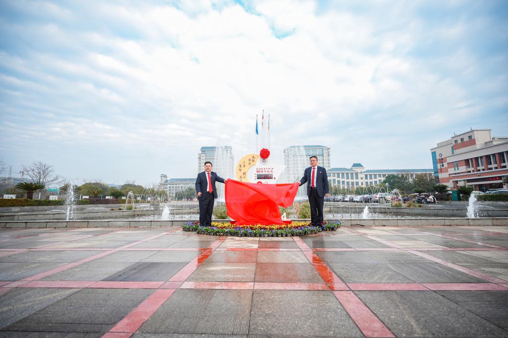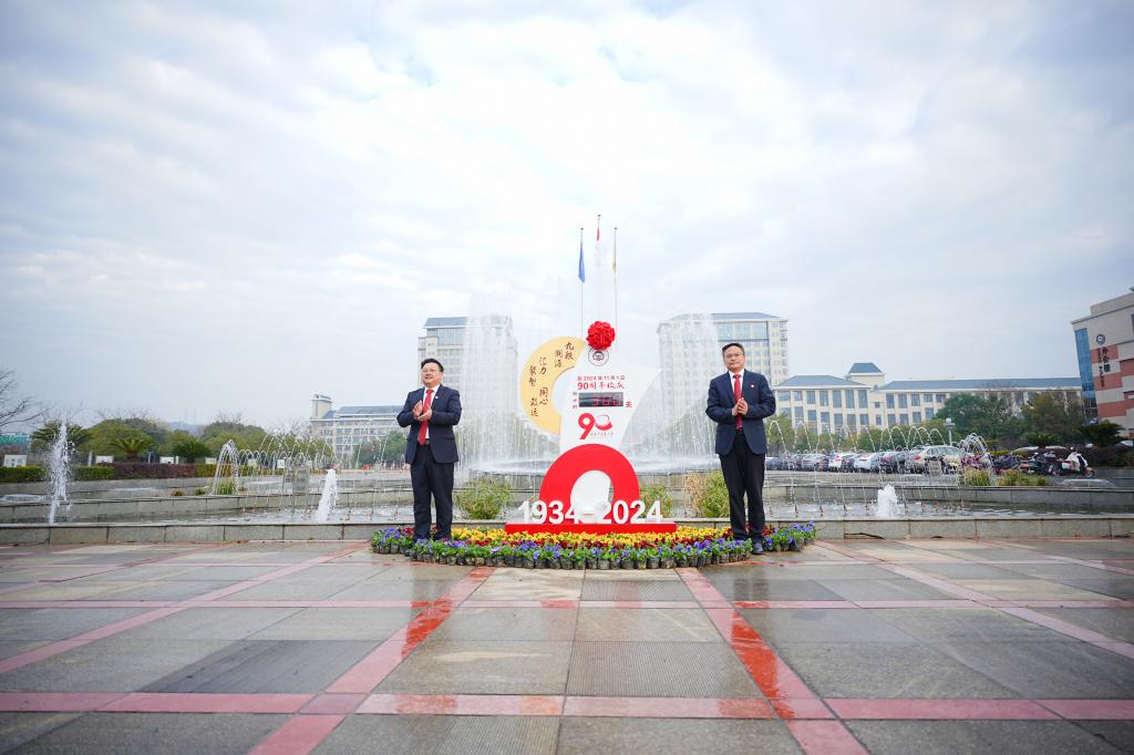 我校党委书记戴爱国、校长易刚强共同为90周年校庆倒计时牌揭幕。