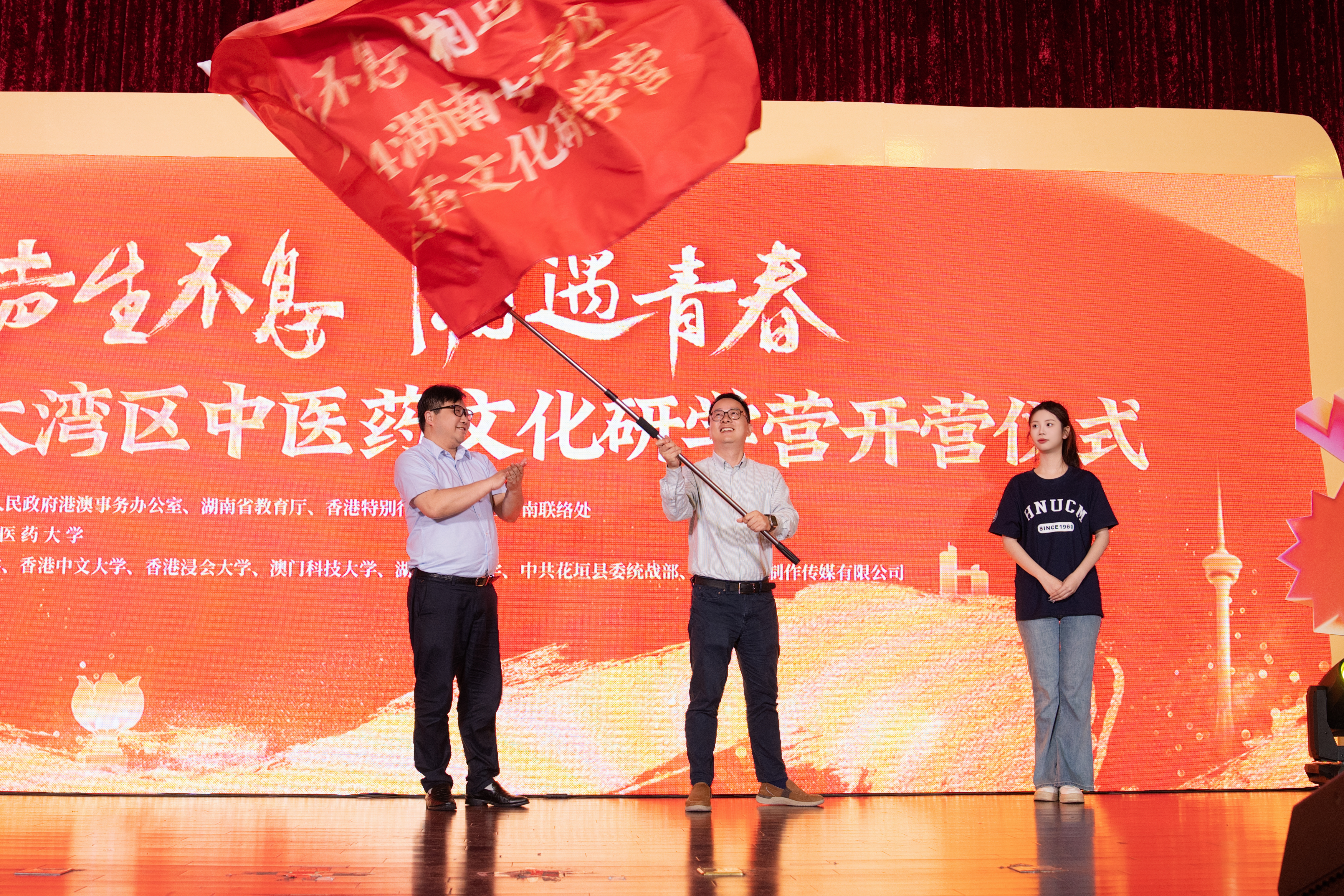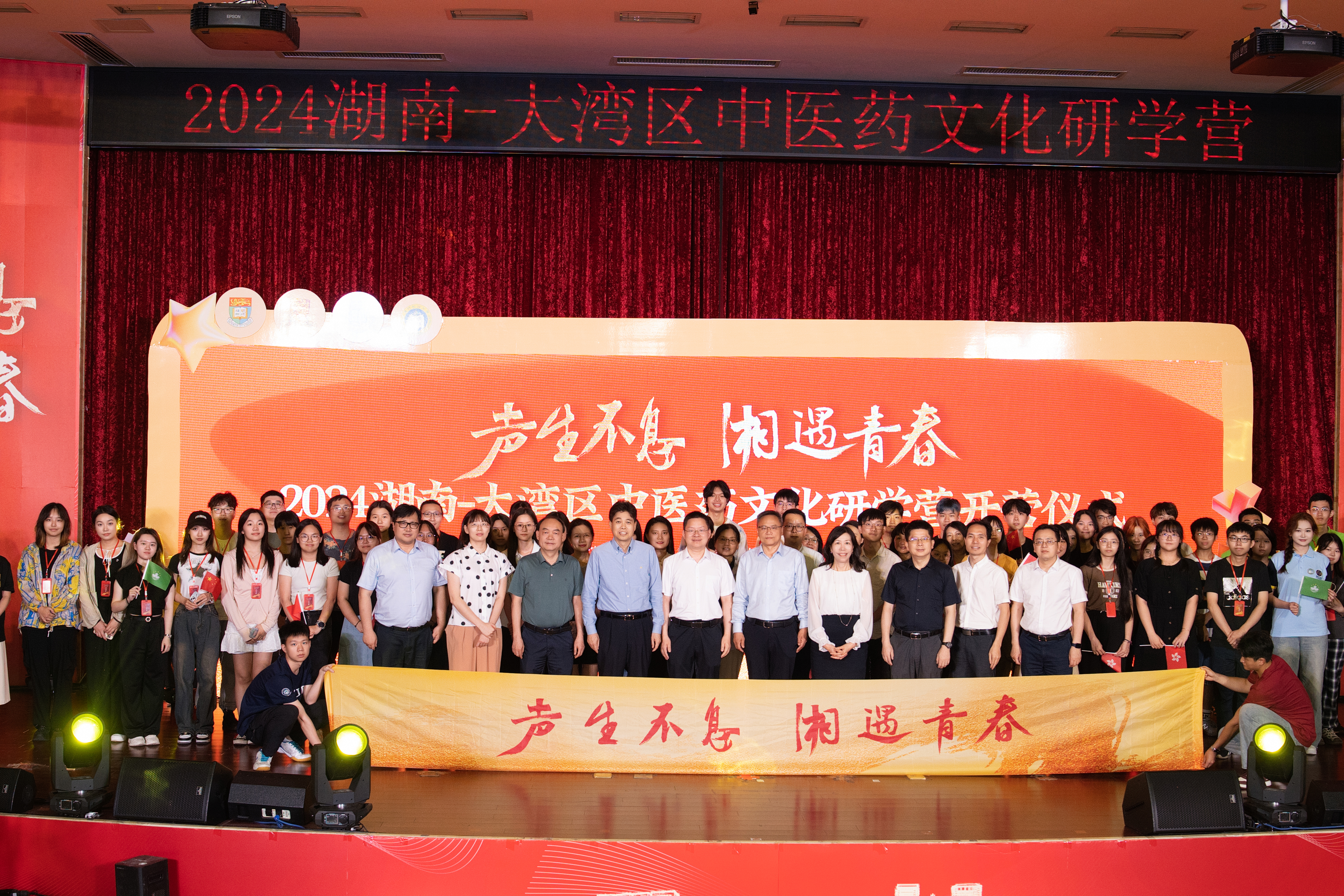 “歌唱我们亲爱的祖国,从今走向繁荣富强……”来自香港大学、香港中文大学、香港浸会大学、澳门科技大学等多所高校的70余名师生,与我校学子一同唱响《歌唱祖国》。6月11日下午,“声生不息·湘遇青春”湖南——大湾区中医药文化研学营在我校开营。湖南省教育厅省委教育工委委员、省教育厅党组成员朱正华,我校校长易刚强,副校长刘鸿翔,湖南省人民政府港澳事务办公室一级巡视员邱爱华出席活动。