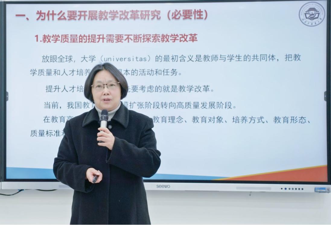开营仪式后,卢芳国教授以《高校教师开展教学改革研究的策略与思考》为题,结合自身丰富的教学改革研究经验,从“为什么要开展教学改革研究?如何找到教学改革研究的切入点?如何争取开展教学改革研究的机会?如何实施教学改革研究项目”四个方面为参训教师带来开营第一讲。