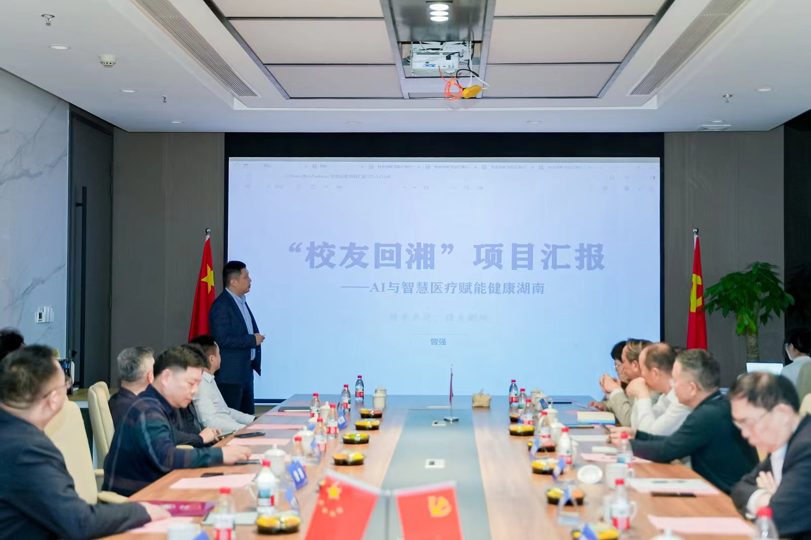 座谈会上,我校校友联络服务中心负责人介绍了学校“校友回湘”工作基本情况。1980级校友、广东佳医邦健康管理集团有限公司董事长张文安介绍了“校友回湘”落地项目株洲青龙湾健康港的建设和发展情况;1998级校友、深圳市辉熙智能科技有限公司董事长、深圳兰丁医疗股份有限公司董事长曾强介绍了湖南省“校友回湘”签约项目“校企共建湖南省AI大数据肿瘤诊断中心”和“智能医疗装备工程研发中心”的进展情况;1980级校友、广东省发展中医药事业基金会理事长贺振泉介绍了广东省健康产业研究院的基本情况以及与我校合作“共建产业研究院、全面推动中医药大健康产业”等回湘愿景。