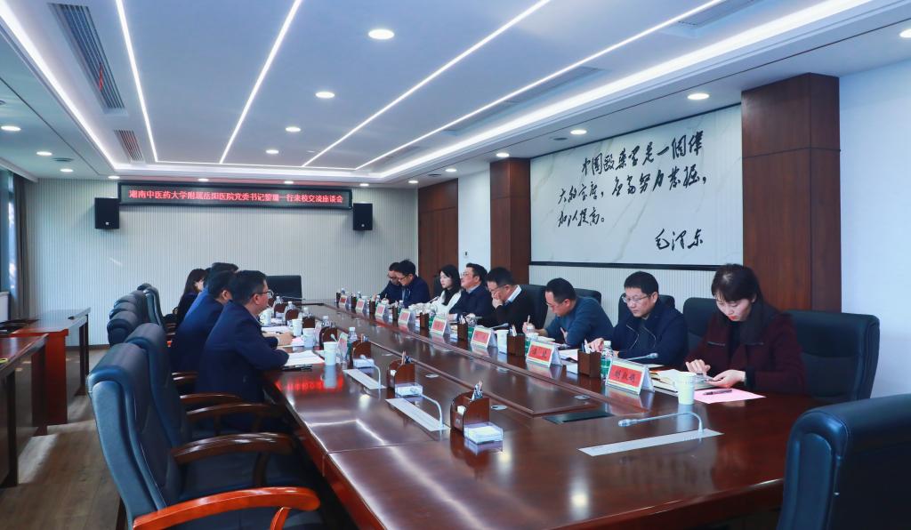 12月11日,我校附属岳阳医院党委书记黎珊一行来校交流。我校党委书记戴爱国出席会议,副校长刘红华主持座谈会。