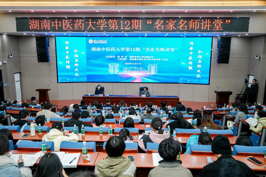 为深化中医药学术传承,弘扬名家名师智慧,12月17日,我校第12期“名家名师讲堂”在立德楼506教室顺利举行。本期讲座特邀我校二级教授、省名中医黄政德担任主讲,副校长喻嵘主持。活动由教务处、教师发展与评估建设处、中医学院及黄政德全国名老中医专家传承工作室联合承办。各相关学院骨干教师、临床带教老师及本、硕、博学生代表200余人,共同聆听了一场关于中医传承与发展的思想盛宴。