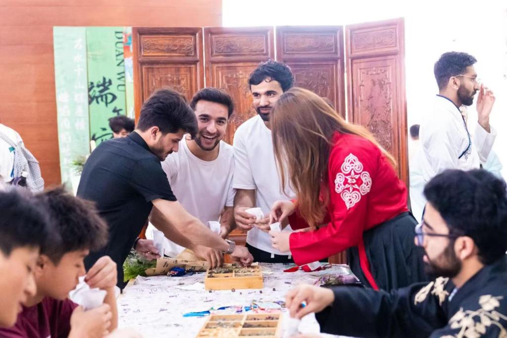 校园内,国际学生们体验着端午、中秋等中国传统节日,将药食同源的中医理念和中华优秀传统文化相结合;