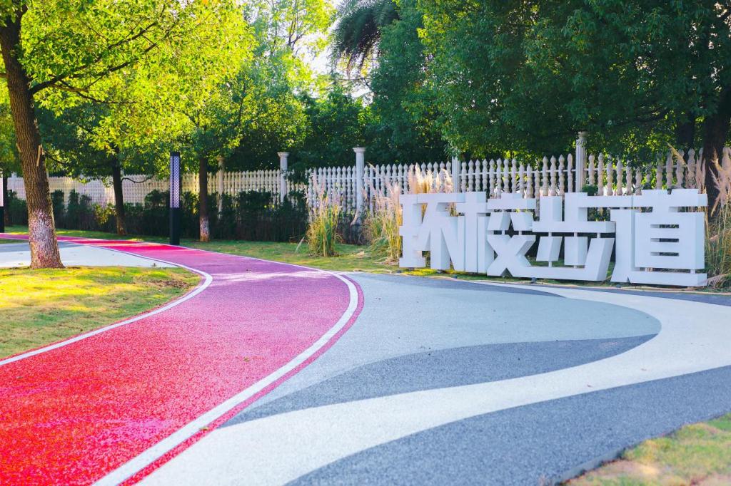 环校步道漫步,足迹串联起药植园、实验楼、生活区等特色文化景观;湿地景观、四季花木、观赏草坪,满眼生绿。