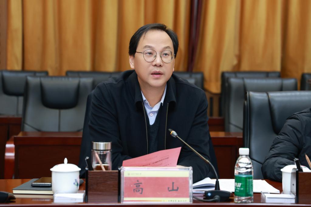 戴爱国代表学校对高山一行的来访表示热烈欢迎,并对省教育厅长期以来的关心与支持表示衷心感谢。他从质量办学、特色办学、开放办学三个维度,系统介绍了学校近年来的办学成果与“十四五”期间的主要成效,并立足学校当前发展实际,围绕“十五五”发展目标,在改善办学条件、强化学科建设、推动创新创业等方面提出了具体支持建议,恳请教育厅继续予以指导和支持。戴爱国表示,学校当前正处于“双一流”建设爬坡过坎的关键阶段、改革创新的攻坚深化时期,同时也是实现跨越式高质量发展的战略机遇窗口。希望省教育厅在政策支持、资源调配、平台搭建等方面继续给予有力指导和倾斜支持。学校将坚定目标、锐意进取,以“双一流”建设的新突破、新成效,为服务教育强国、教育强省战略贡献更大力量、注入新的发展动能。