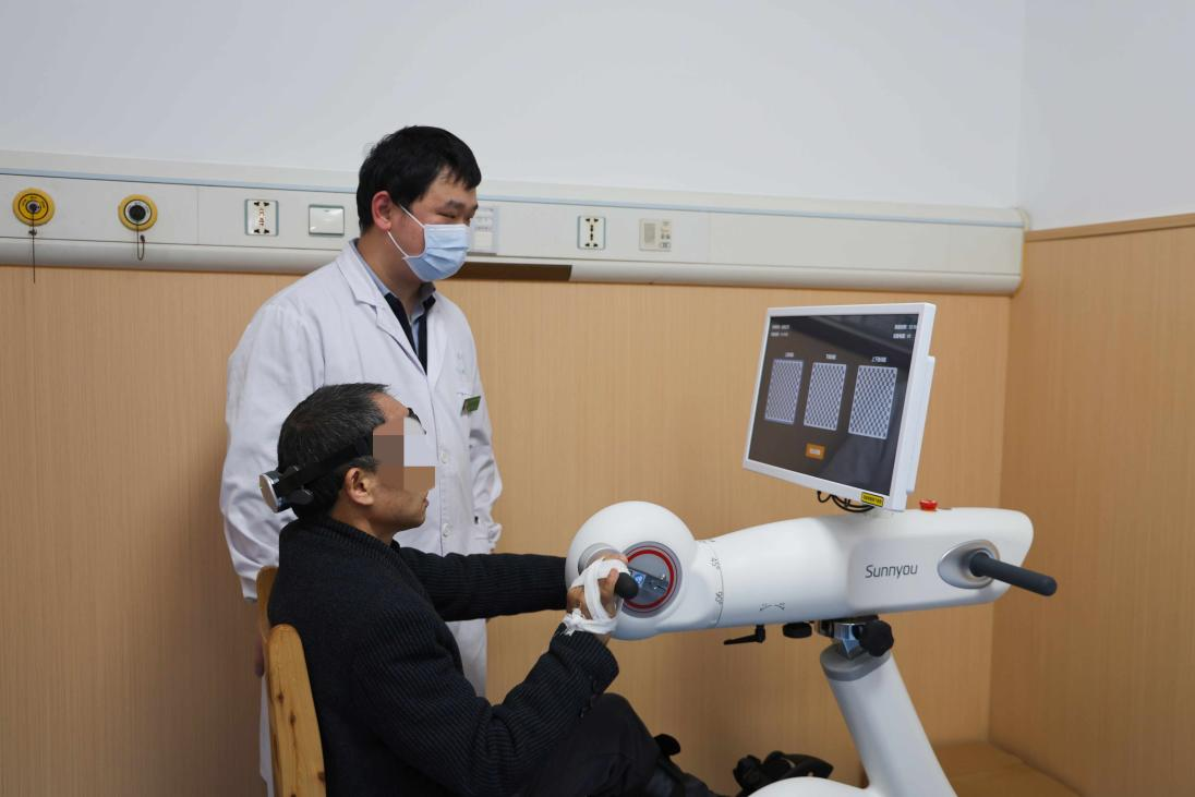 患者进行脑机接口康复设备体验