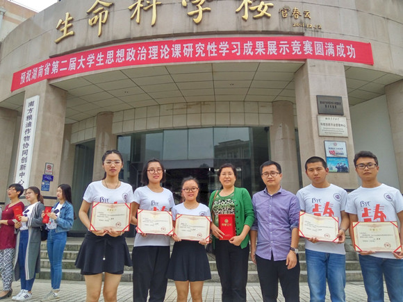 5月21日上午,在湖南农业大学举行的湖南省第二届大学生思想政治理论课研究性学习成果展示竞赛决赛中,我校由马克思主义学院邵华老师指导的2014级中西结合学院七年制陈子佳、盛博洋、王国庆、卞希岚、谭婕5人组成的代表队获得全省本科院校代表队季军,获得省级二等奖。
