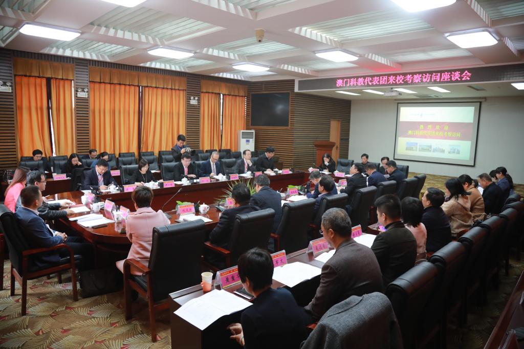 12月12日上午,在澳门回归祖国20周年即将到来之际,由中国工程院院士、澳门科技大学校长刘良为团长,澳门特别行政区政府高等教育局局长苏朝晖为荣誉顾问的澳门科教代表团一行来我校考察。在考察调研了我校国家重点学科中医诊断研究所、中医药创新药物研究所、中药标本馆、中药种质资源库后在行政楼一楼会议室召开座谈会。省政协副主席胡旭晟、省中医药管理局副局长倪友新,校(院)长戴爱国,副校长彭清华、易刚强、姜怡邓陪同考察并参会。