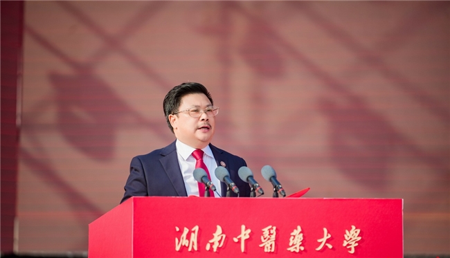 1981级校友、解放军总医院肝病医学部学术委员会主任、全军中医药研究所所长肖小河作为校友代表发言。他表示,今年7月,与母校共建了中医药精准用药研究中心,希望能借此契机,取得更多创新成果,为母校高质量发展注入新活力,打造新引擎,期待与母校风雨同担、荣辱与共,以实际行动来感恩回馈母校。