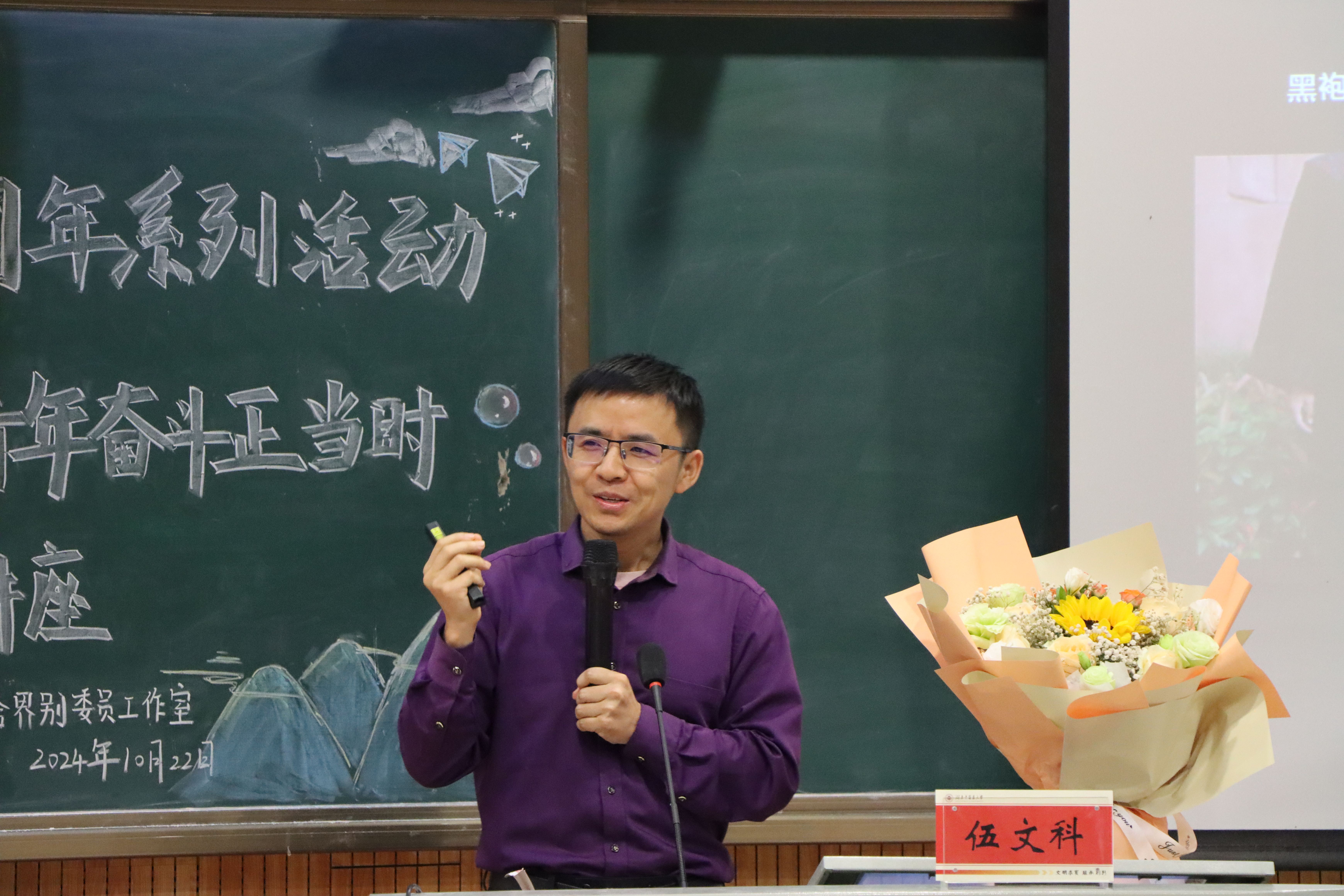 熊乂东围绕自身职场故事展开授课,为大家未来求职提供宝贵的意见。他表示,职场中遇到挫折在所难免,但要秉持积极向上的正心正念。同时,他勉励同学们要不断学习,将个人目标做精、做全、做专。