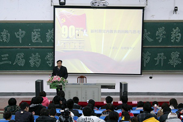 12月1日晚,药学院第三届药学节在2506教室开幕。药学院党总支书记易刚强,党总支副书记、副院长鲁耀邦及学生科、院团委工作人员、学院第六届分团委学生会成员及各班党员、预备党员、入党积极分子代表等三百多人参加开幕式。