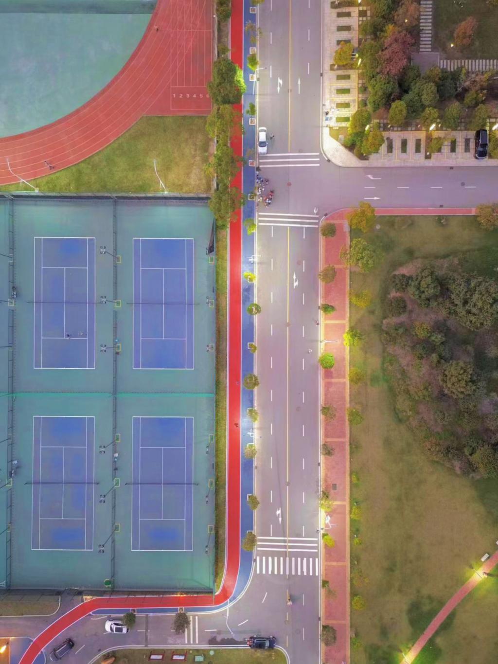 行在湖中大,步步惊喜、步步惊叹!一条红色环校步道悄然上新,步道总长2800米,途经一鉴塘、双创中心、职工食堂、大学生活动中心等,基本环抱整个校园成为校园新晋网“红”打卡点。