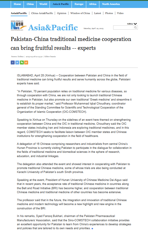 本文翻译自新华网《Pakistan-China traditional medicine cooperation can bring fruitful results -- experts》