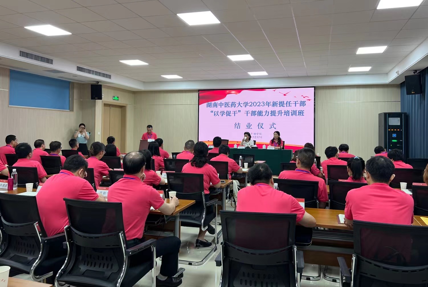 学校党委委员、组织人事部部长焦珞珈主持结业仪式,学校纪委副书记、监察专员办公室主任、培训班班长易辉作学习总结。中西医结合学院党委书记张国民、党政办公室副主任李晓龙、科技处副处长李丹丹、第二附属医院纪委书记王爱辉作为学员代表发言。