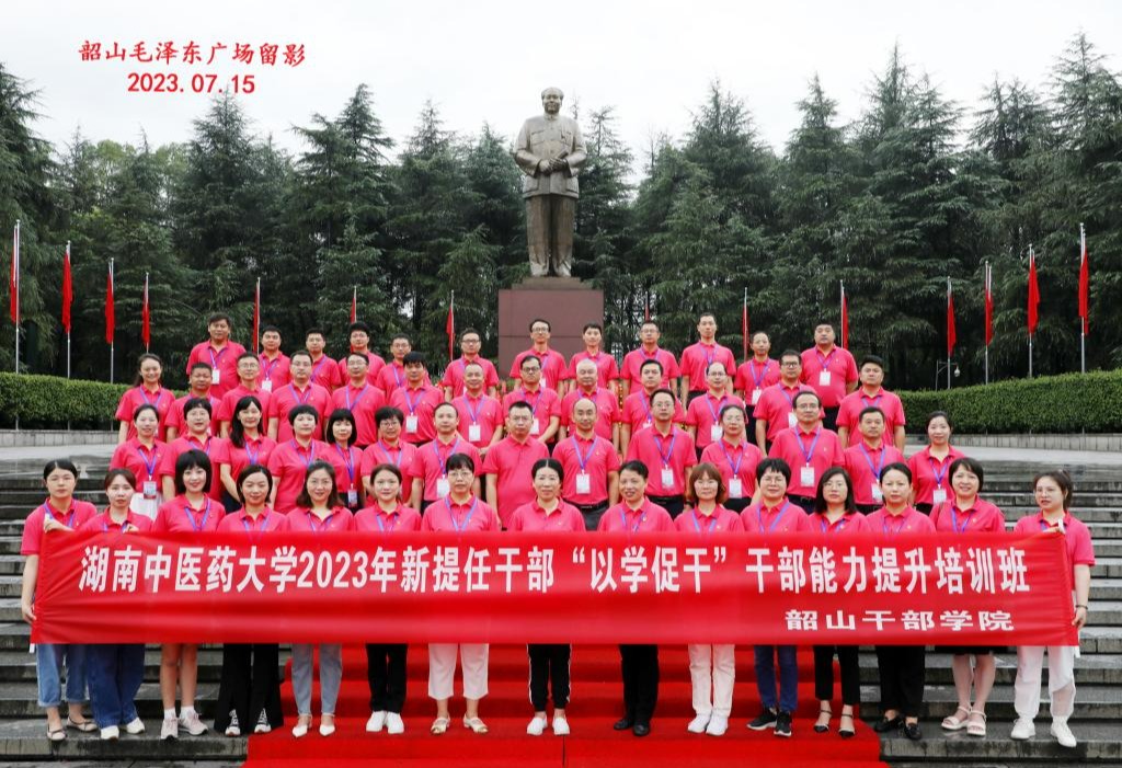 为深入学习贯彻习近平新时代中国特色社会主义思想,7月14日至17日,我校在韶山干部学院举办2023年“以学促干”干部能力提升培训班,51名新提任干部参加培训。培训班采取专题教学、课堂教学、现场教学、党性教育、交流研讨等方式,着力提升处级干部的政治素质和履职能力,培养锻造高素质干部队伍。