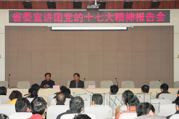 11 月 26 日下午,学校党委在含浦校区国际交流中心会议厅召开学习十七大精神报告会,省委十七大精神宣讲团成员、省委宣传部理论处肖君华处长来我校宣讲党的十七大精神。