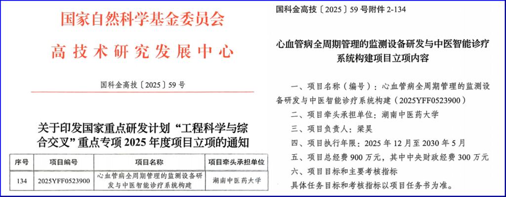 近日,国家重点研发计划“工程科学与综合交叉”重点专项立项名单正式公布,我校中医药科学院副院长、副教授梁昊牵头申报的“心血管病全周期管理的监测设备研发与中医智能诊疗系统构建”(青年科学家项目)成功获批。这是我校首个牵头的国家重点研发计划项...