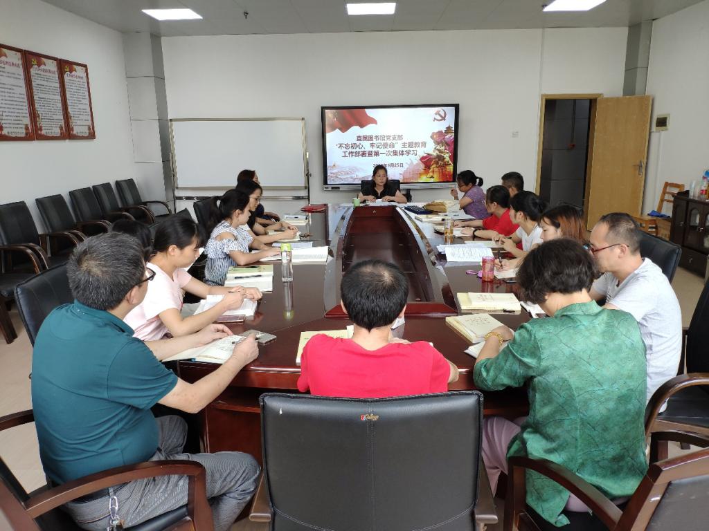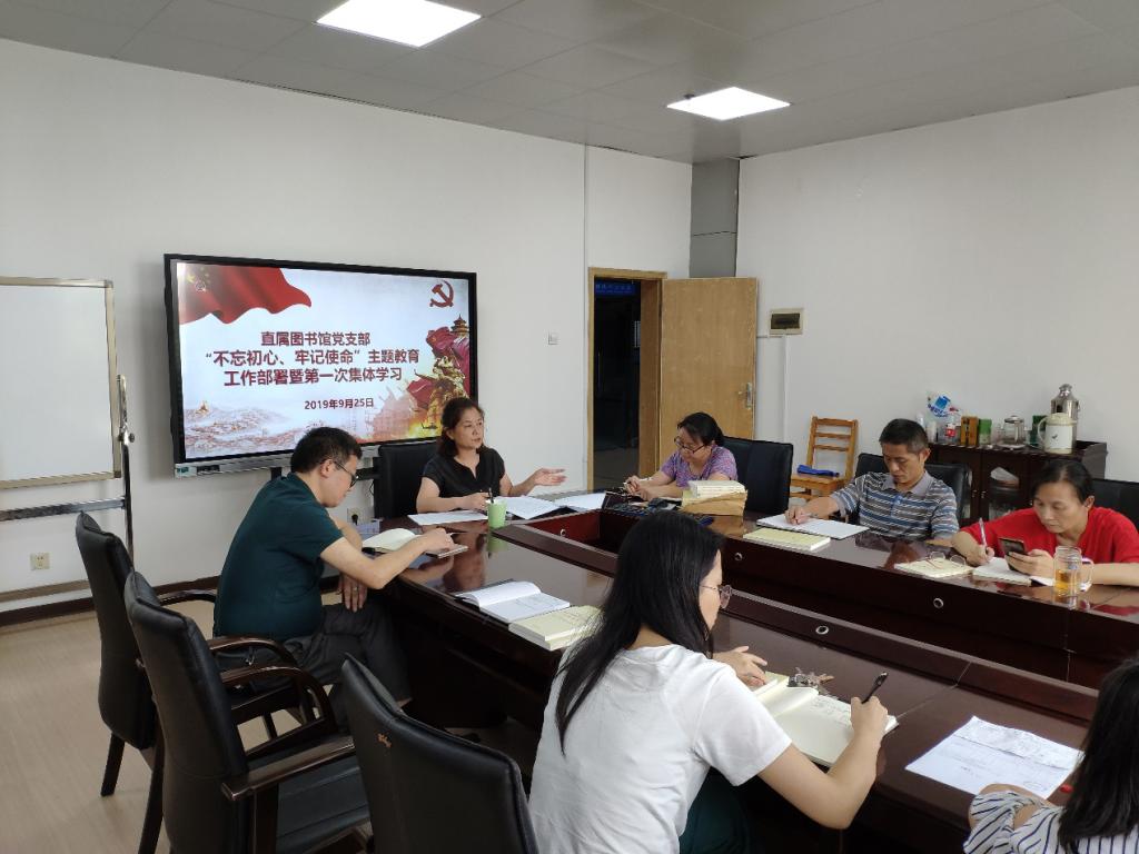 9月25日下午,直属图书馆党支部在图书馆会议室召开了“不忘初心、牢记使命”主题教育工作部署及集体学习会,会议由王云辉书记主持,图书馆副馆长谢梦洲及全体党员参加。