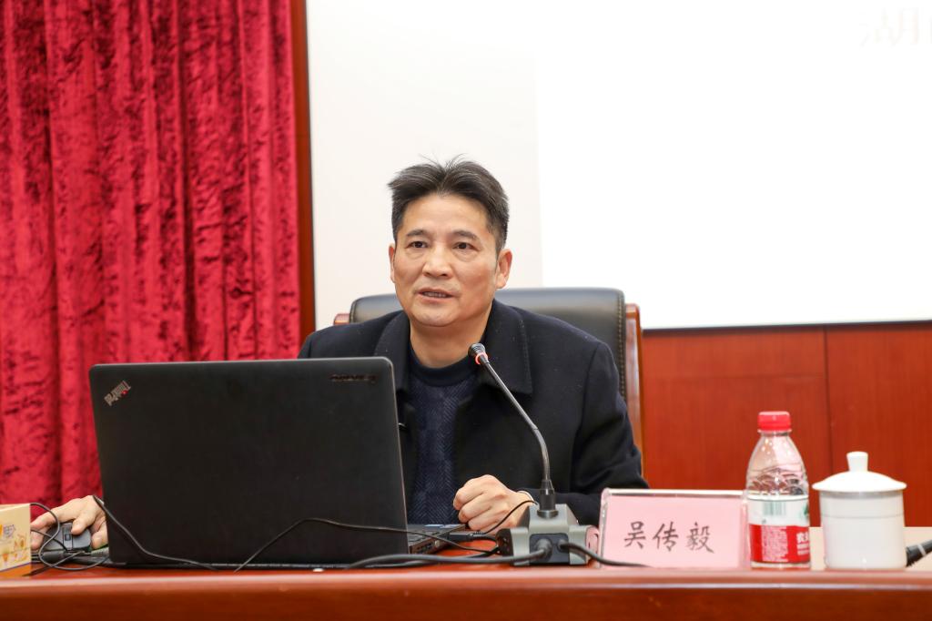 会议邀请中共湖南省委党校副校长、湖南行政学院副院长吴传毅教授作题为《从百年党史中汲取奋进力量——学习领会党的十九届六中全会精神》专题党课。医院全体院领导,各党总支、直属党支部、党支部书记、支委,护士长以上中层干部,民主党派代表,研究生、住培生党员代表等共计300多名党员干部参加学习。医院党委书记陈新宇主持会议。