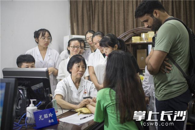 慕名而来的患者中包括不少外籍人士。9月11日,尤昭玲正在接诊一位来自巴基斯坦的女性患者,当天,她已看了13个国际号患者。长沙晚报全媒体记者 黄启晴 摄