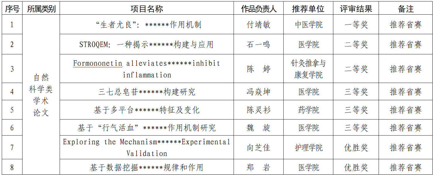 根据《关于开展第十六届“挑战杯”湖南省大学生课外学术科技作品竞赛校内选拔赛的通知》安排,经宣传动员、单位推荐、复赛评审、决赛终审等环节,确定29件作品获奖,具体名单如下。