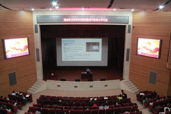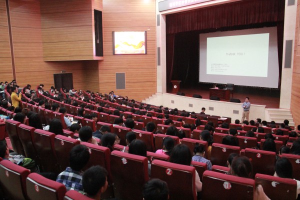 本报讯(郑蓉 王勇 佘能豪)4月2日晚,由校团委主办的2015年湖南省大学生GYB创业培训半岛手机版官网登录 专场讲座在大学生活动中心开讲。本次讲座由长沙市高新区创业服务中心周东主讲,校团委李宗霖老师主持。