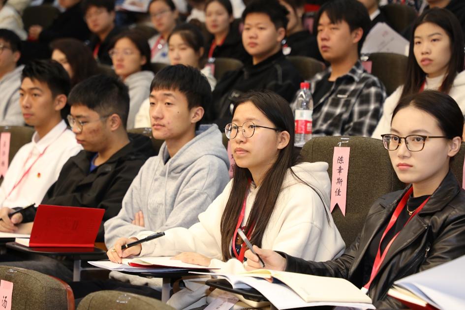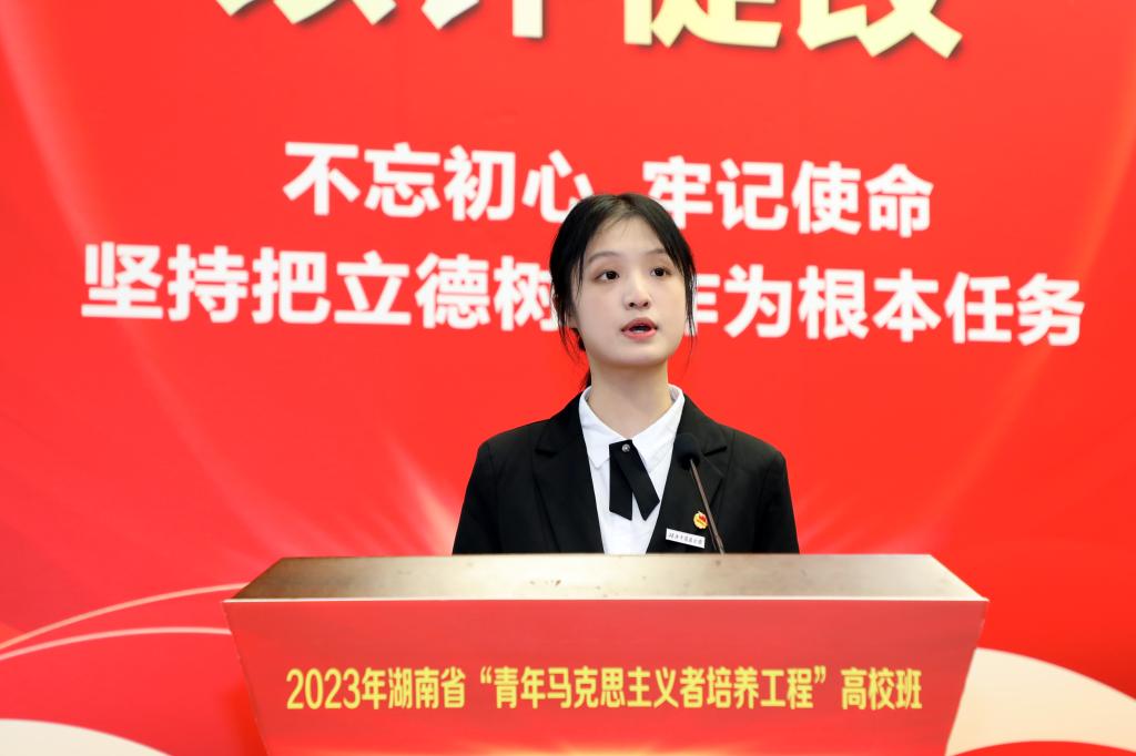 医药大学本科生李嘉琳、中南大学研究生谭汉同学作为学员代表进行发言,他们号召全体学员,将涵养爱国主义情怀和树立马克思主义信仰结合起来,将激发奋斗精神和担当时代责任结合起来,将锻炼过硬本领和锤炼品德修为结合起来,努力成为又红又专、德才兼备、全面发展的中国特色社会主义合格建设者和可靠接班人,为实现“三高四新”美好蓝图贡献力量,为“强国建设、民族复兴”挺膺担当。
