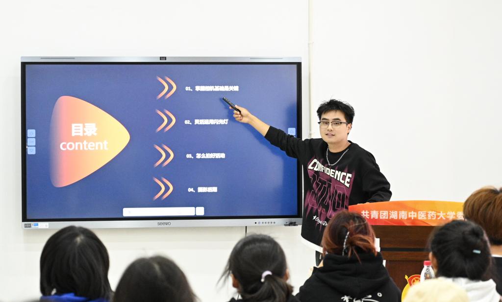 10月22日,受校团委邀请,《潇湘晨报》高级记者胡涛来校开展《新闻摄影的取景及拍摄方法》专题讲座,来自各校级学生组织的学生代表共60余人参加了讲座。