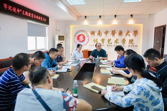 2019年9月19日中午12:30,在体育艺术学院会议室召开“不忘初心、牢记使命”主题教育部署动员会议。传达贯彻省校(院)“不忘初心、牢记使命”主题教育工作会精神,安排部署全院主题教育工作。主题教育校(院)督导三组成员代表、学院领导班子成员、学院全体党员参加会议。