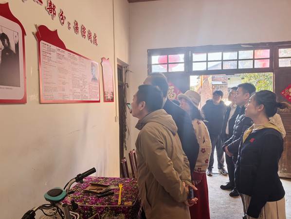 走访结束后,团队集体参观了夏光故居,重温革命历史,感悟初心使命。随后,体育艺术学院副院长龙专与村两委的同志进行了座谈交流。天心桥村目前已建成光伏发电项目约1700亩,主要经济作物包括水稻、脐橙和茶叶,并逐步开发出采摘体验、研学实践等农旅融合项目。双方围绕如何进一步发挥高校资源优势,助力村级产业升级、拓展农产品销路、培育乡村文化品牌等方面展开了积极探讨。