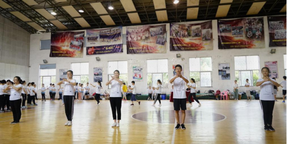 学生上场行抱拳礼