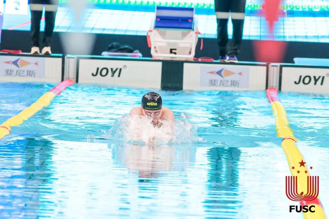 12月3日-7日,第22届中国大学生游泳锦标赛(总决赛)在厦门海沧体育中心游泳馆举行,在体育艺术学院李叶梓老师的带领下,湘杏学院2020级学生刘子豪沉着应赛、奋力拼搏,以1分10秒50再破个人最好成绩,荣获男子甲组100M蛙泳银牌和50M蛙泳第5名。