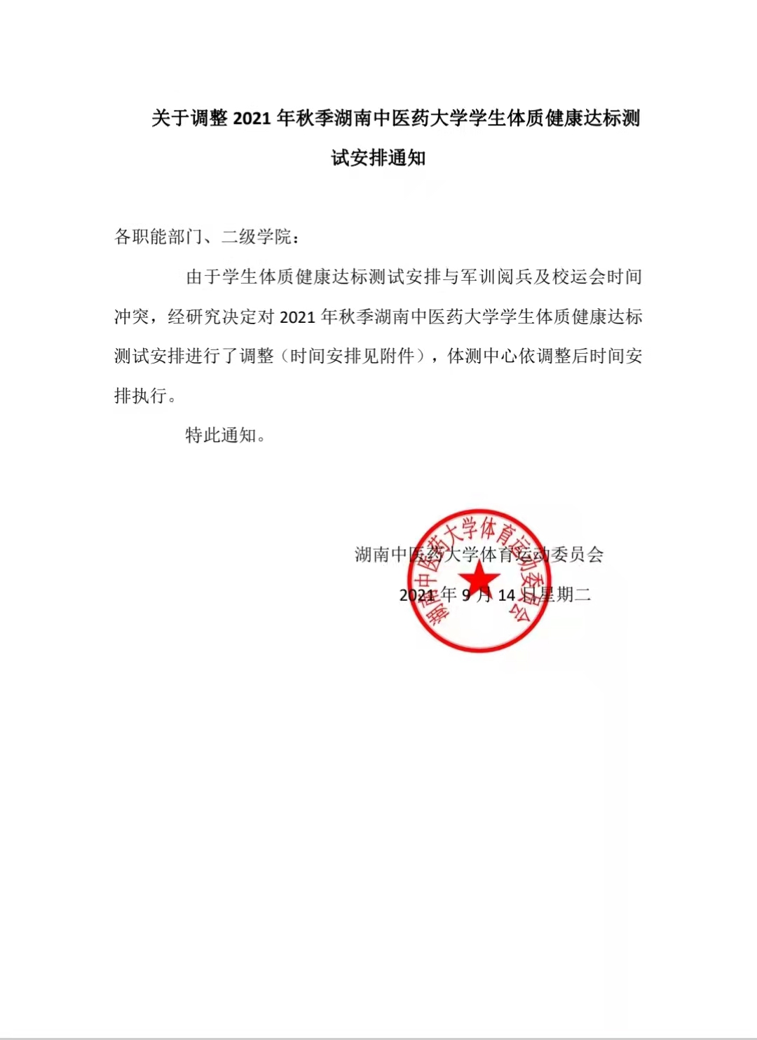 关于调整2021年秋季半岛手机版官网登录 学生体质健康达标测试安排通知