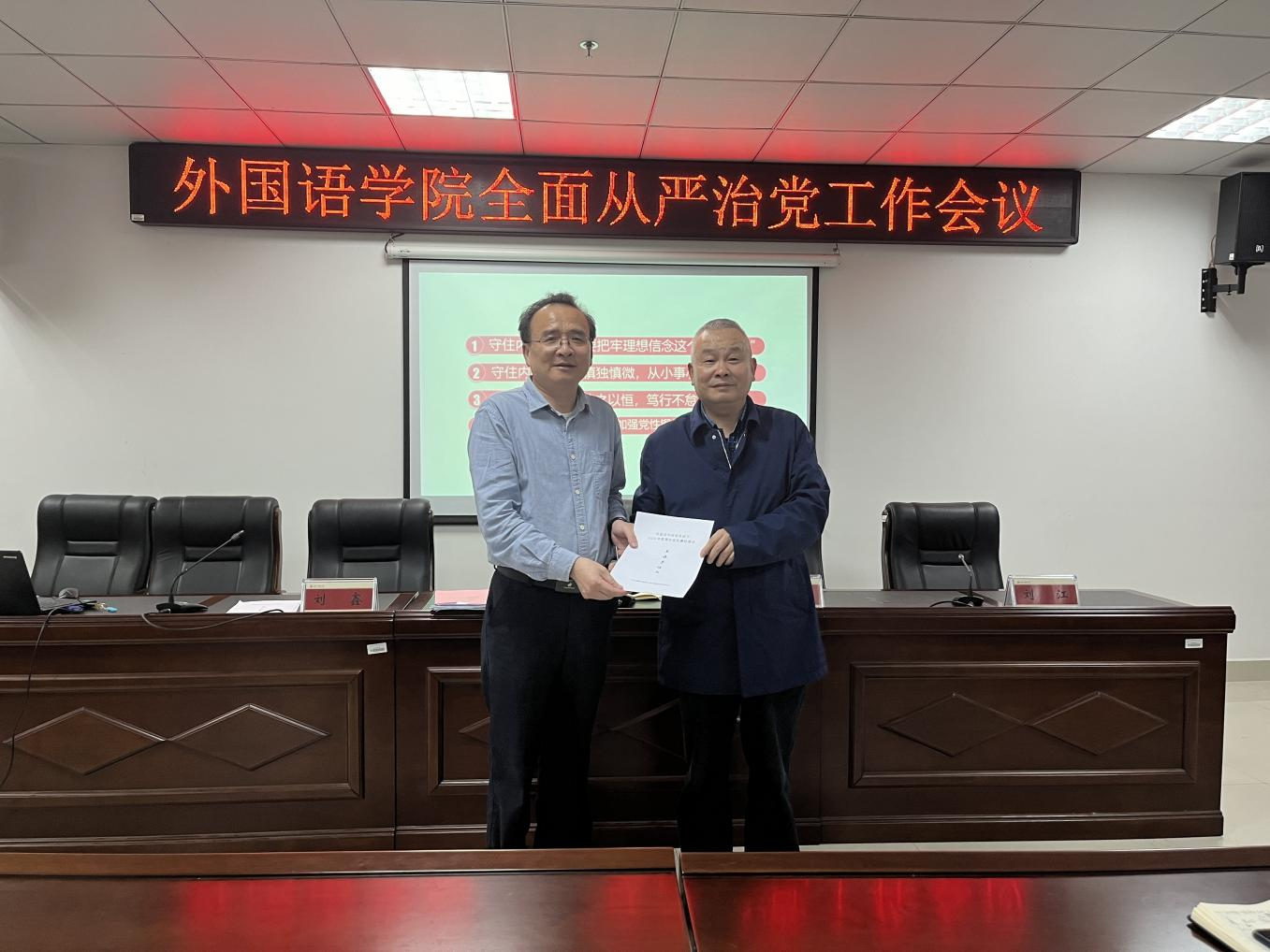 4月30日,外国语学院召开了全面从严治党工作会议,全院教职工参会。会议由学院党委书记程华初主持。