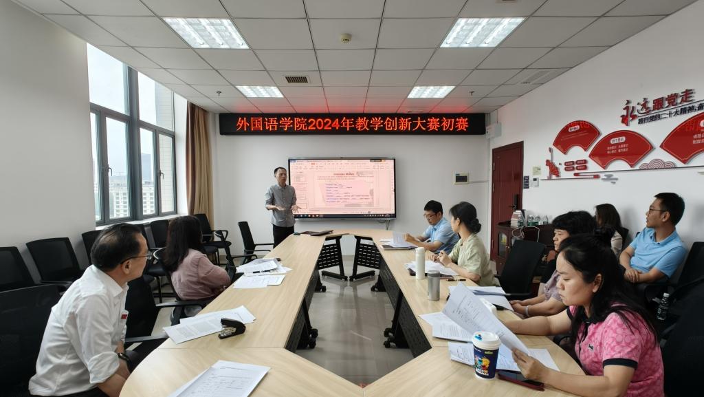 5月22日中午,学院在703会议室举行2024年教学创新大赛初赛,副院长刘江教授及主要教研室负责人担任评委。