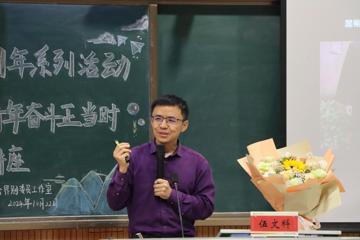 熊乂东围绕自身职场故事展开授课,为大家未来求职提供宝贵的意见。他指出,职场中遇到挫折在所难免,但要秉持积极向上的正心正念。同时,他表示要不断学习,将个人目标做精、做全、做专。伍文科从职业选择和求职面试两个方面出发进行讲授。他强调,在职业选择方面要“三问”自己,即择己所好、择己所长、择己所求。在求职面试方面需做好“加减乘除”法,发挥自身优势,改变不良习惯。他还从人力资源管理的角度分析了面试技巧,帮助同学们精准择业、高效从业。