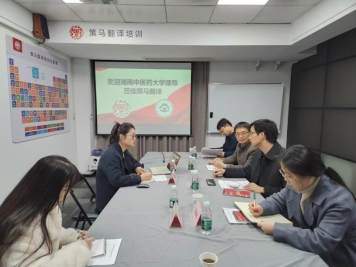 策马公司长沙负责人倪影经理全面介绍了公司的业务和优势,希望结合我院“外语+中医药”人才培养特色,进行更深层次的产教研合作。会上双方对学生的翻译实习、教师培养、产教融合、就业联动等内容进行了深入的探讨。