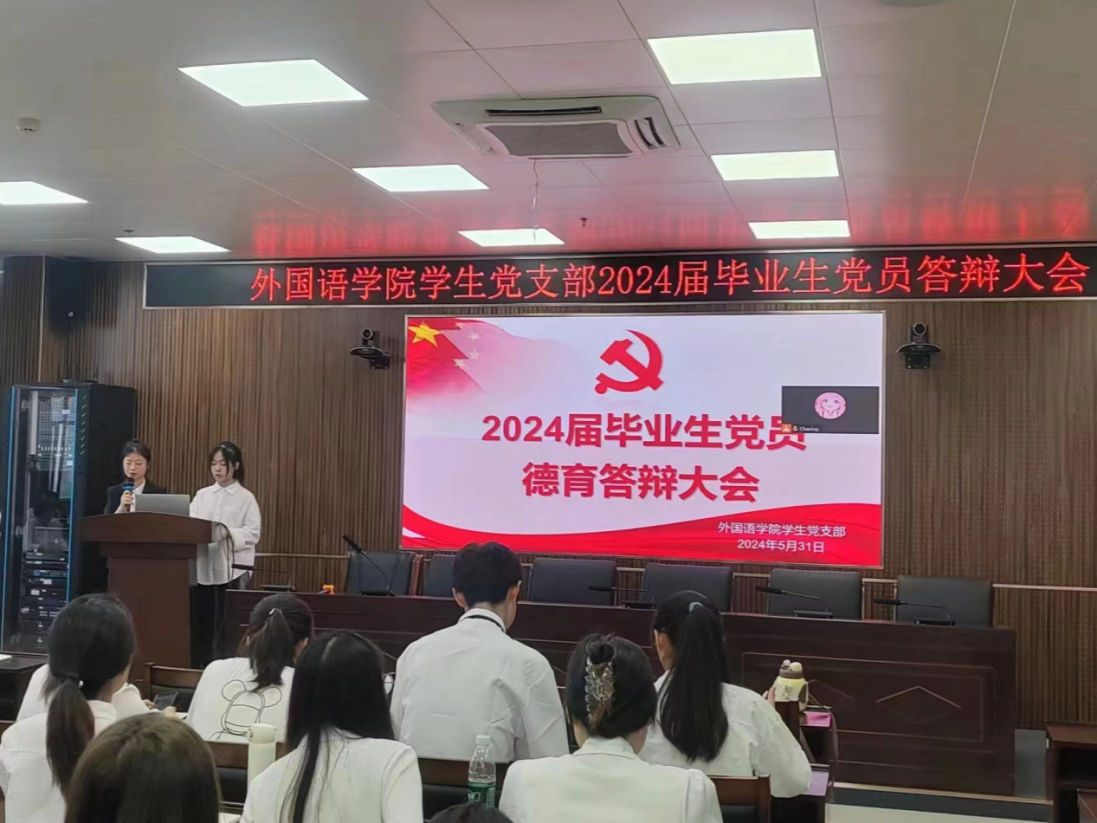 (通讯员:滕若轩)为贯彻落实党的教育方针,加强毕业生党员的思想政治教育,加强毕业生的思想政治教育,激励全体毕业生党员坚定信念、胸怀祖国,牢记党员责任、脚踏实地、担当作为,5月31日下午,半岛手机版官网登录 外国语学院学生党支部“不忘初心,牢记使命”2024届毕业生党员答辩大会于第三教学楼0906教室召开。