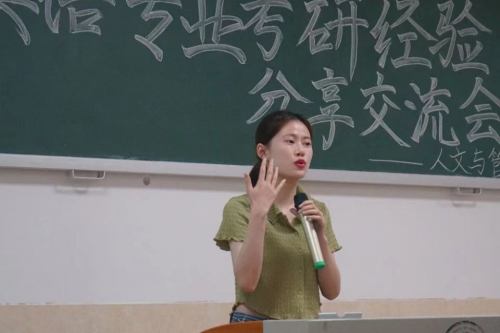 交流会上,8位成功考研上岸的学生结合切身经历分享了各自宝贵经验。2018级英语1班的陈雅熙目前被湖南大学录取,她表示,考研非常重要的是“要保持一个良好的心态,要掌握正确的方法去调整心态,坚定目标”。2018级英语3班的喻静目前被西安交通大学录取,她告诉同学们如何选择学校以及适合自己考研的方向,并讲解了考研的复习方法。此外还有赵玮婷、汤燕青、罗妍、陈心宇、黄晶洁、李沛珊、戴妮等同学也讲述了自己考研的经历,整个活动干货满满,赢得了大家热烈的掌声。
