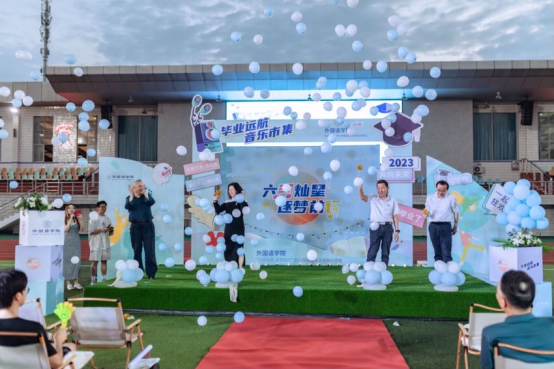 6月6日下午,外国语学院2023届“六月灿星,逐梦前行”毕业远航音乐市集在含浦校区操场隆重举行。外国语学院党委书记程华初、外国语学院院长廖光蓉、大学招生就业处处长姚旭东、学生工作部副部长李晓红、外国语学院副院长刘江、外国语学院副书记刘鑫及部分老师出席活动。活动由2019级毕业生万琪轩、陈雨昕主持。